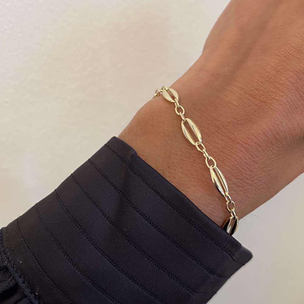 Forside » SMYKKER » Armbånd » Guld Armbånd » Armbånd - Guld 8 kt. (333) Armbånd i 8 Karat Guld med Aflange Led – Klassisk Design Varenr.: 99176-G-333Forv. Lev. 2 til 4 dage 1stk Forhandlerpris 3.600,00DKK(ex. moms) Vejl. pris 0DKK BARTOLI Copenhagen - +15 år online Kundeservice - 29 700 209 Forsendelse med Trackingnummer 14 dages retur- & ombytningsret info 8 karat guld armbånd med aflange led Elegant armbånd i Guld med tidløst design Elegant og tidløst armbånd i 8 karat Guld fra Guld & Sølv Design. Armbåndet er udført med små aflange led, der giver et let og stilfuldt udtryk. Den polerede overflade tilfører en smuk glans og et eksklusivt look. Det klassiske design gør armbåndet perfekt til både hverdag og festlige lejligheder. Bær det alene for et enkelt og elegant udtryk, eller kombinér det med andre armbånd for et moderne og personligt look. Et alsidigt smykke, der passer til enhver stil. GULD & SØLV DESIGN - 9274/08 Produkttype Armbånd Materiale 333 - Guld 8 karat Overflade Poleret Tykkelse Bredde Længde Højde Sten Carat Vægt
