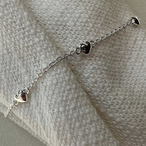 Forside » SMYKKER » Motiver » Smykker med Hjertemotiver » Armbånd med Hjerte Armbånd i Sterling Sølv med Hjerter. Varenr.: 98953-S-925Forv. Lev. 4 til 5 dage 1stk Forhandlerpris 295,00DKK(ex. moms)395,00 Vejl. pris 0DKK BARTOLI Copenhagen - +15 år online Kundeservice - 29 700 209 Forsendelse med Trackingnummer 14 dages retur- & ombytningsret info Armbånd i Sterling Sølv med Hjerter. Smukt og feminint armbånd i ægte Sterling Sølv, prydet med tre fine små hjerter. Armbåndet har et enkelt og tidløst design, der gør det ideelt til både hverdag og særlige anledninger. Kan justeres i længderne 17, 18 og 19 cm for perfekt pasform. BY LUND COPENHAGEN 9011408 Produkttype Armbånd Materiale 925 - Sølv Overflade Poleret Tykkelse Bredde Længde 17, 18 og 19 cm Højde Sten Carat Vægt
