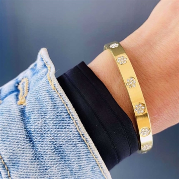 Forside » SMYKKER » Armbånd » Armbånd - Stål Armring i Guldfarvet Stål med Zirkonia Varenr.: 99168-100-RSFForv. Lev. 2 til 4 dage 1stk Forhandlerpris 399,00DKK(ex. moms) Vejl. pris 0DKK BARTOLI Copenhagen - +15 år online Kundeservice - 29 700 209 Forsendelse med Trackingnummer 14 dages retur- & ombytningsret info Armring i Guldfarvet Stål med Zirkonia Elegant armring med funklende sten hele vejen rundt Elegant armring fra CO88 hos GULD & SØLV DESIGN i guldfarvet rustfrit stål med funklende zirkonia, der pryder hele armringen og giver et eksklusivt og strålende udtryk. Den polerede overflade fremhæver den smukke glans, mens det slidstærke og vandfaste materiale sikrer lang holdbarhed. Armringen måler ca. 5,8 x 4,9 cm og sidder komfortabelt på håndleddet. Perfekt til både hverdag og fest – bær den alene for et elegant look eller kombinér med andre armbånd for et personligt udtryk. Produkttype Armring Materiale Rustfrit Stål Overflade Poleret og guldfarvet Tykkelse Bredde Længde Højde Sten Zirkonia Carat Vægt