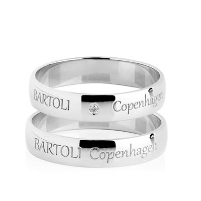 BARTOLI Classic vielsesringe i Hvidguld med Diamant 0,01 ct. samt ind og udvendig gravering