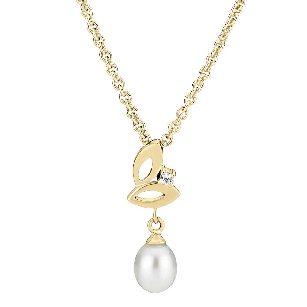 Collier i forgyldt sølv med ferskvandsperle og zirkonia