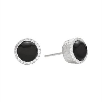 Collier i Sølv med rundt vedhænget. Vedhænget er med en rund mørkegrå/sort glassten 9 mm i diameter.