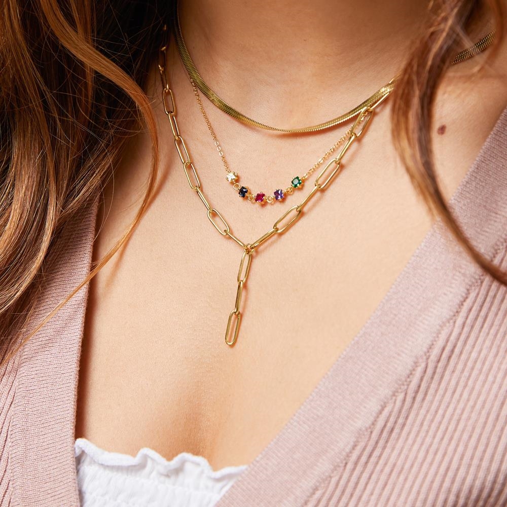 Halskæden har en praktisk karabinlås og kan justeres i længden fra 40 til 45 cm, så den passer perfekt til både hverdag og fest.
