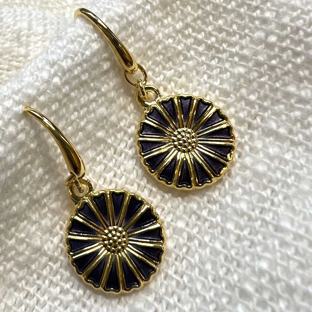 Marguerit Ørehængere i forgyldt Sølv med Lilla Emalje