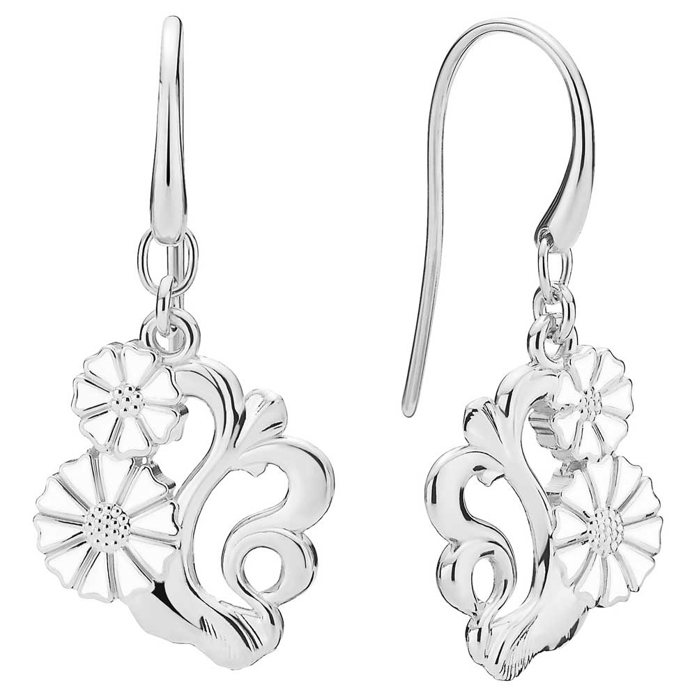 Elegante marguerit ørehængere i barok design med hvid emalje