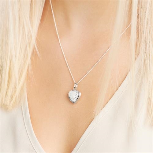 Yndig hjerteformet Medaljon med mønster. Medaljonens overflade er poleret.