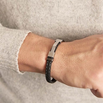 Forside » SMYKKER » Herresmykker » Armbånd til mænd Moderne Armbånd i Sort Gummi med detaljer i Rustfri Stål Varenr.: 98985-100-GUForv. Lev. ca. 10 dage 1stk Forhandlerpris 385,00DKK(ex. moms) Vejl. pris 0DKK Vælg graveringstype Vælg variant Ingen gravering Diamantgravering Forside (10014) Lasergravering Forside (10024) Vælg skrifttype Vælg variant Blokbogstaver Skråskrift Indtast graveringstekst Vælg evt. symbol Vælg variant Intet Symbol Hjerte heart-with-arrow Two-hearts Uendelighedstegn Double-ring BARTOLI Copenhagen - +15 år online Kundeservice - 29 700 209 Forsendelse med Trackingnummer 14 dages retur- & ombytningsret info Sporty og stilfuldt tilbehør Dette moderne armbånd i sort Gummi kombinerer afslappet design med elegante detaljer. Lysegrå kontrastsyninger giver et moderne og maskulint udtryk. Rustfri stål og personlig gravering De dekorative elementer i rustfrit Stål tilfører et eksklusivt touch. Midterstykket og låsen kan personliggøres med indgravering, hvilket gør armbåndet helt unikt. Justerbar længde for perfekt pasform Armbåndet måler 9,9 mm i bredden og 20 cm i længden, men kan afkortes ved at fjerne endestykkerne, tilpasse længden og samle det igen. Et perfekt valg til mænd, der ønsker sporty, stilfuldt og personligt tilbehør til hverdag og fritid. Produkttype Armbånd Materiale Gummi og rustfrit Stål Overflade Poleret Tykkelse 5,5 mm Bredde 9,9 mm Længde Højde Sten Carat Vægt 12,6 gram