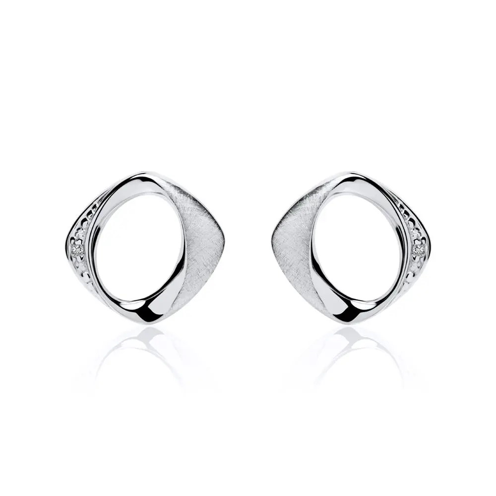 Øreringen er prydet med to brillantslebne Diamanter på i alt 0,02 ct, i farvekvaliteten Fine White (Top Wesselton) og klarheden SI (små inklusioner).