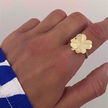 Forside » SMYKKER » Ringe » Ringe - Forgyldt Sølv Ring i forgyldt Sølv med Firkløver og Zirkonia Varenr.: 99058-FS-925Forv. Lev. 4 til 5 dage 1stk Forhandlerpris 895,00DKK(ex. moms) Vejl. pris 0DKK Vælg ringstørrelse Vælg variant BARTOLI Copenhagen - +15 år online Kundeservice - 29 700 209 Forsendelse med Trackingnummer 14 dages retur- & ombytningsret info Ring i forgyldt Sølv med firkløver og zirkonia Elegant firkløver ring i forgyldt Sterlingsølv Smuk og moderne ring i forgyldt sterlingsølv med et elegant firkløver-design. Firkløveren symboliserer held og lykke og er dekoreret med en funklende hvid zirkonia, der giver ringen et eksklusivt og feminint udtryk. Smykket kombinerer klassisk design med et stilrent og moderigtigt look, som passer perfekt til både hverdag og fest. Firkløveren måler 16 mm i diameter og fremhæver ringens fine detaljer. En oplagt gaveidé til fødselsdag, konfirmation, studentergave eller som en særlig forkælelse til dig selv. Produkttype Ring Materiale 925 - Sterling Sølv forgyldt Overflade Poleret Tykkelse Bredde 16 mm Længde Højde Sten Carat Vægt Måske er du også interesseret i følgende produkter Fingermåler - Ringmåler 25,0012,00DKK
