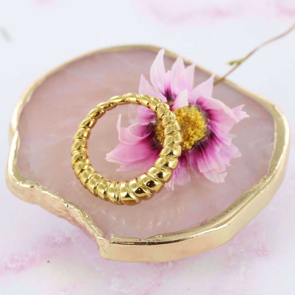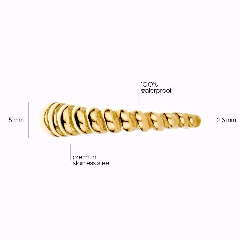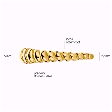 Forside » SMYKKER » Ringe » Ringe i Stål Snoet Guldfarvet Ring i Stål – PVD Belægning Varenr.: 99160-100-RSFForv. Lev. 4 til 5 dage 1stk Forhandlerpris 249,00DKK(ex. moms) Vejl. pris 0DKK Vælg ringstørrelse Vælg variant BARTOLI Copenhagen - +15 år online Kundeservice - 29 700 209 Forsendelse med Trackingnummer 14 dages retur- & ombytningsret info Snoet Ring i Guldfarvet Stål Elegant ring med snoet design og glans Elegant ring fra GULD & SØLV DESIGN i rustfrit Stål med guldfarvet PVD-belægning. Det fine snoede design skaber et smukt og stilfuldt udtryk med et flot spil i lyset. Ringen er både slidstærk og vandfast, hvilket gør den ideel til daglig brug uden at miste sin glans. Den er behagelig at bære og passer perfekt til både hverdag og fest. Brug ringen alene for et enkelt look eller kombinér med andre ringe for et personligt og moderne udtryk. GULD & SØLV DESIGN - 8CR-10032 Produkttype Ring Materiale Rustfrit Stål Overflade Poleret - PVD - Guldbelægning Tykkelse Bredde 5 mm Længde Højde Sten Carat Vægt