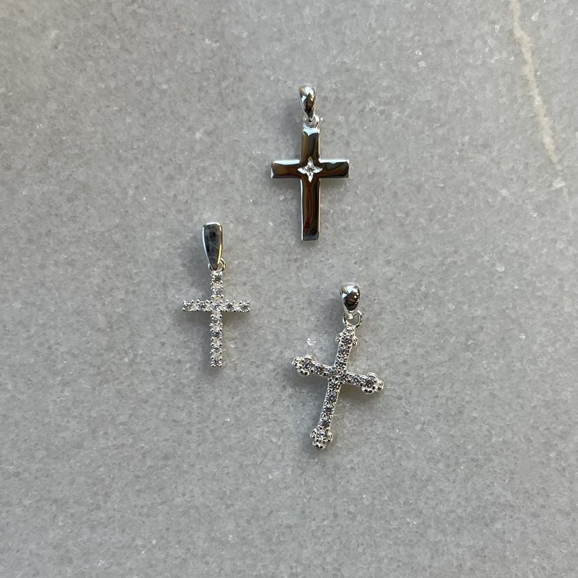 Smukt og feminint vedhæng med lille kors i ægte sølv. Korset er prydet med 11 klare, funklende hvide zirkoniasten, der giver et elegant og strålende udtryk.