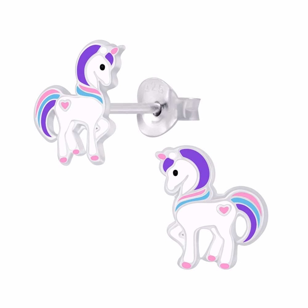 Fine og eventyrlige ørestikker i ægte Sølv med søde enhjørninger. Det polerede og emaljerede design giver et flot og levende udtryk med fine detaljer, som gør øreringene ekstra charmerende. Ørestikkerne måler 8 x 6 mm og har en behagelig størrelse, der passer perfekt til børn. Et ideelt smykke til enhver, der elsker enhjørninger og fantasifulde universer. Perfekte som gave og en favorit i enhver piges smykkesamling.