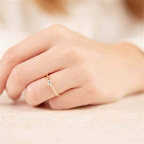 Forside » SMYKKER » Ringe » Ringe - Guld » Ringe - Guld 14 kt. Solitairering i 14 kt. Guld med Lab-Grown Diamant 0,10 ct. Varenr.: 99018-G-585Forv. Lev. 10 til 14 dage 1stk Forhandlerpris 6.025,00DKK(ex. moms) Vejl. pris 0DKK Vælg ringstørrelse Vælg variant BARTOLI Copenhagen - +15 år online Kundeservice - 29 700 209 Forsendelse med Trackingnummer 14 dages retur- & ombytningsret info Solitairering i 14 kt. Guld med Lab-Grown brillantslebet Diamant - 0,10 ct. Denne elegante solitairering i 14 karat Guld (585) forener tidløs skønhed med moderne ansvarlighed. Ringen er i et klassisk design og passer perfekt som forlovelsesring, gave eller eksklusivt hverdagssmykke. Ringens midtpunkt er en brillantslebet lab-grown diamant på ca. 0,10 ct., indfattet i en stilren 4-graps fatning, der sikrer maksimal lysindfald og smuk brillans. Diamanten har farve River – Top Wesselton samt klarhed VS–VVS, hvilket giver et klart og funklende udtryk i høj kvalitet. Den laboratoriedyrkede diamant er kemisk, fysisk og optisk identisk med en naturlig diamant, da den – ligesom minediamanter – består af komprimeret kulstof. Produkttype Ring Materiale 585 - Guld 14 karat Overflade Poleret Tykkelse 1,5 mm Bredde Længde Højde Sten Lab- Grown Diamant D-F/VS-VVS Carat Total 0,10 ct Vægt Måske er du også interesseret i følgende produkter Fingermåler - Ringmåler 25,0012,00DKK