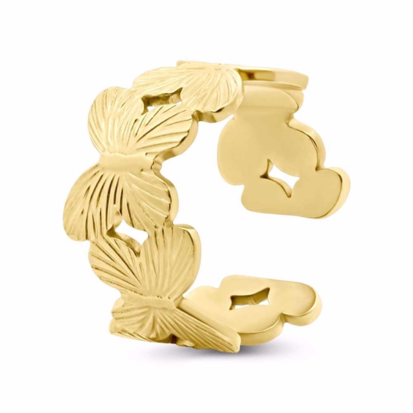 Forside » SMYKKER » Ringe » Stål Sommerfuglering i PVD Guldbelagt Stål – Justerbar Varenr.: 99157-100-RSFForv. Lev. 4 til 5 dage 1stk Forhandlerpris 199,00DKK(ex. moms) Vejl. pris 0DKK BARTOLI Copenhagen - +15 år online Kundeservice - 29 700 209 Forsendelse med Trackingnummer 14 dages retur- & ombytningsret info Sommerfuglering i PVD Guld – Justerbar Elegant ring med fine sommerfugle detaljer Smuk og feminin ring i stål med PVD guldbelægning, designet med fine og detaljerede sommerfugle. Den åbne og justerbare form gør ringen fleksibel og nem at tilpasse, så den passer de fleste fingre. Den blankpolerede guldoverflade giver et elegant og stilfuldt udtryk, mens sommerfuglene tilfører et let og dekorativt look. Perfekt til både hverdag og fest – bær den alene eller kombinér med andre ringe for et personligt udtryk. En oplagt gaveidé eller en lille forkælelse til dig selv. Produkttype Ring Materiale Stål - PVD Guldbelægning Overflade Poleret - Tykkelse Bredde Længde Højde Sten Carat Vægt