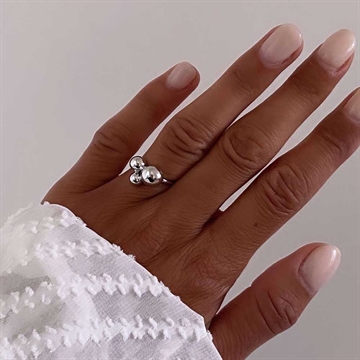 SOPHIA kugle ring i 925 Sterling Sølv fra Guld & Sølv Design er en elegant og stilfuld ring dekoreret med tre kugler i forskellige størrelser. Det enkle, men karakterfulde design skaber et moderne og feminint udtryk, der passer til enhver stil. Den glatte overflade giver ringen et flot og eksklusivt finish. Perfekt til både hverdag og fest, hvor den kan bæres alene for et minimalistisk look eller kombineres med andre ringe for et personligt udtryk. Et tidløst smykke, der tilfører elegance til din smykkesamling.