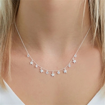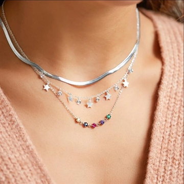 Forside » SMYKKER » Halskæder / Collier » Halskæde/Collier - Sølv Stjernehalskæde i Sterling Sølv med Zirkonia Varenr.: 98836-S-925Forv. Lev. ca. 10 dage 1stk Forhandlerpris 715,00DKK(ex. moms) Vejl. pris 0DKK BARTOLI Copenhagen - +15 år online Kundeservice - 29 700 209 Forsendelse med Trackingnummer 14 dages retur- & ombytningsret info Stjernehalskæde i Sterling Sølv med Zirkonia Magisk og funklende halskæde med stjernemotiv Giv dit look et ekstra glimt med denne elegante halskæde i Sterling Sølv (925), inspireret af stjernehimlen. Halskæden er udsmykket med både skinnende og matte stjerner samt Zirkoniasten, der reflekterer lyset smukt og skaber et funklende udtryk. Justerbar længde med sikker lukning Halskæden har en praktisk fjederringlås og kan justeres i længden fra 40 til 43 cm, så den passer perfekt til enhver udskæring og stil. Den ligger elegant omkring halsen og kan bæres alene eller kombineres med andre smykker for et lag-på-lag look. Et tidløst og iøjnefaldende smykke Denne stjernehalskæde er et ideelt valg til både hverdag og fest, og fungerer også som en smuk gaveidé. Kombinationen af sterlingsølv og glitrende zirkonia giver et klassisk, men moderne udtryk, som vil blive bemærket. Produktdetaljer: Materiale: Sterling Sølv (925) Motiv: Stjerner – skinnende og matte Sten: Zirkoniasten Lås: Fjederlås Justerbar længde: 40–43 cm Vægt: 2,4 gram Stil: Moderne, funklende og elegant Måske er du også interesseret i følgende produkter Sølv armbånd med Stjerner og Zirkoiasten 450,00DKK Halskæde i forgyldt Sølv med Stjerner og Zirkoniasten 550,00DKK