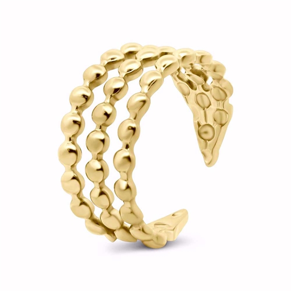 Forside » SMYKKER » Ringe » Stål Tredobbelt Kuglering i Guldfarvet Stål – Justerbar Varenr.: 99162-100-RSFForv. Lev. 4 til 5 dage 1stk Forhandlerpris 199,00DKK(ex. moms) Vejl. pris 0DKK BARTOLI Copenhagen - +15 år online Kundeservice - 29 700 209 Forsendelse med Trackingnummer 14 dages retur- & ombytningsret info Tredobbelt Kuglering i Guldfarvet Stål Justerbar ring med tre rækker kugler Stilfuld ring i rustfrit Stål med guldfarvet PVD-belægning og et unikt design med tre rækker af små, blanke kugler. Det åbne design gør ringen justerbar (onesize), så den nemt tilpasses de fleste fingre. Den gyldne overflade og de bløde former giver et moderne og feminint udtryk, som både kan bæres alene eller sammen med andre smykker. Ringen er slidstærk, vandfast og behagelig at have på til daglig brug. Et perfekt valg til dig, der ønsker et smykke med kant og elegance. Se også matchende armring. Produkttype Ring Materiale Rustfrit Stål Overflade Poleret - PVD guldbelægning Tykkelse Bredde Længde Højde Sten Carat Vægt Måske er du også interesseret i følgende produkter Armring i Guldfarvet Stål med Kugletråde 299,00DKK