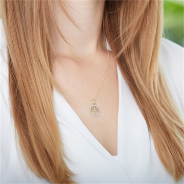 Vedhæng i 14 kt. Guld og Hvidguld med Livets træ og Diamanter - 0,01 ct.