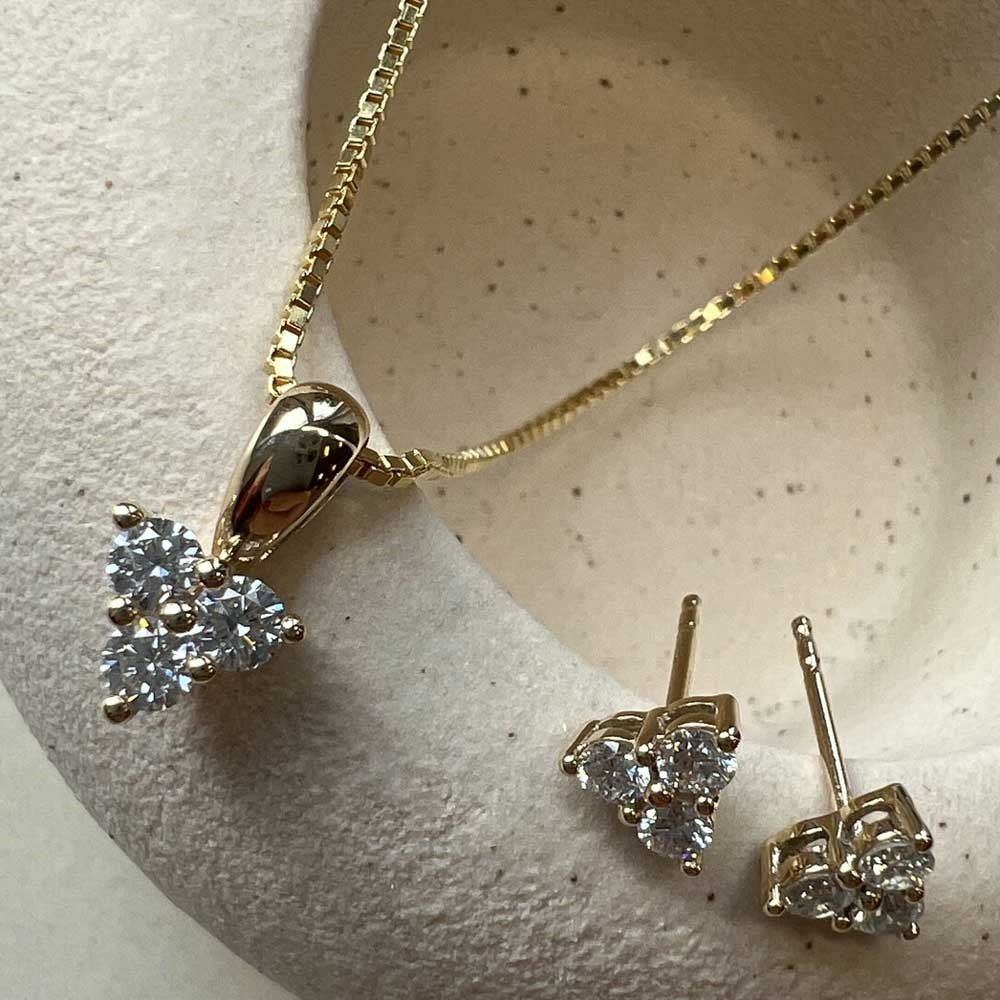 Eksklusivt vedhæng i 8 kt. Guld, prydet med tre funklende Lab-grown Diamanter TW.VS på i alt 0,30 ct. Det elegante trekantede design giver et moderne og stilfuldt udtryk, perfekt til både hverdag og fest.