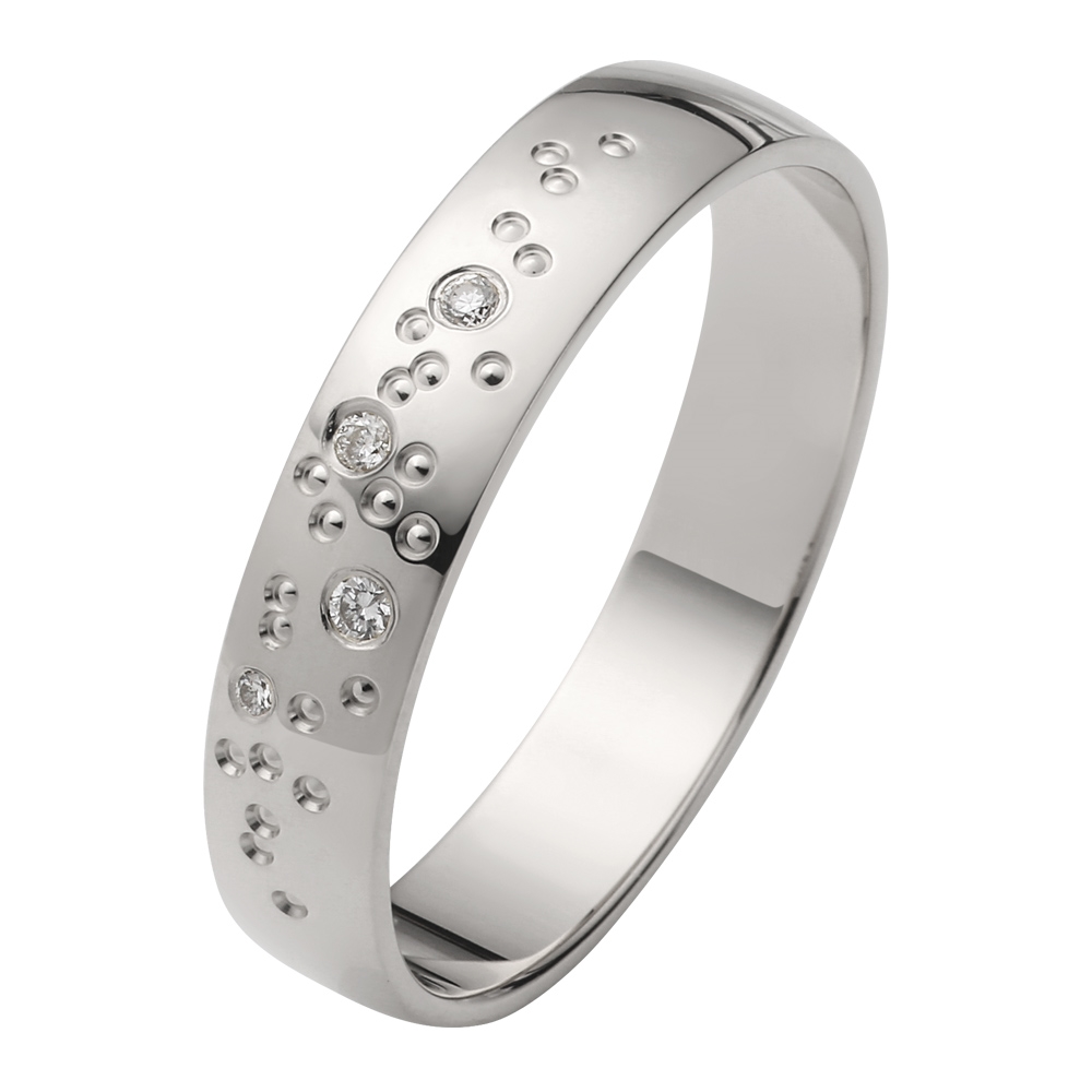 Dameringen er udsmykket med 4 glitrende Lab-Grown diamanter på i alt 0,03 ct, placeret som en stjernehimmel, der tilføjer et subtilt og sofistikeret sparkle.