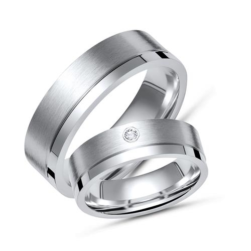 Vielsesringe i Sølv hvor overfladen er delvis fin matteret i længdegående retning med højglans poleret kant.